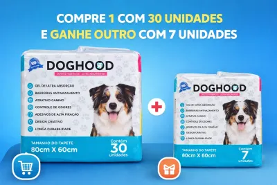 Tapetes Higiênicos Doghood 80x60 cm com 30 un e ganha 1 com 7un